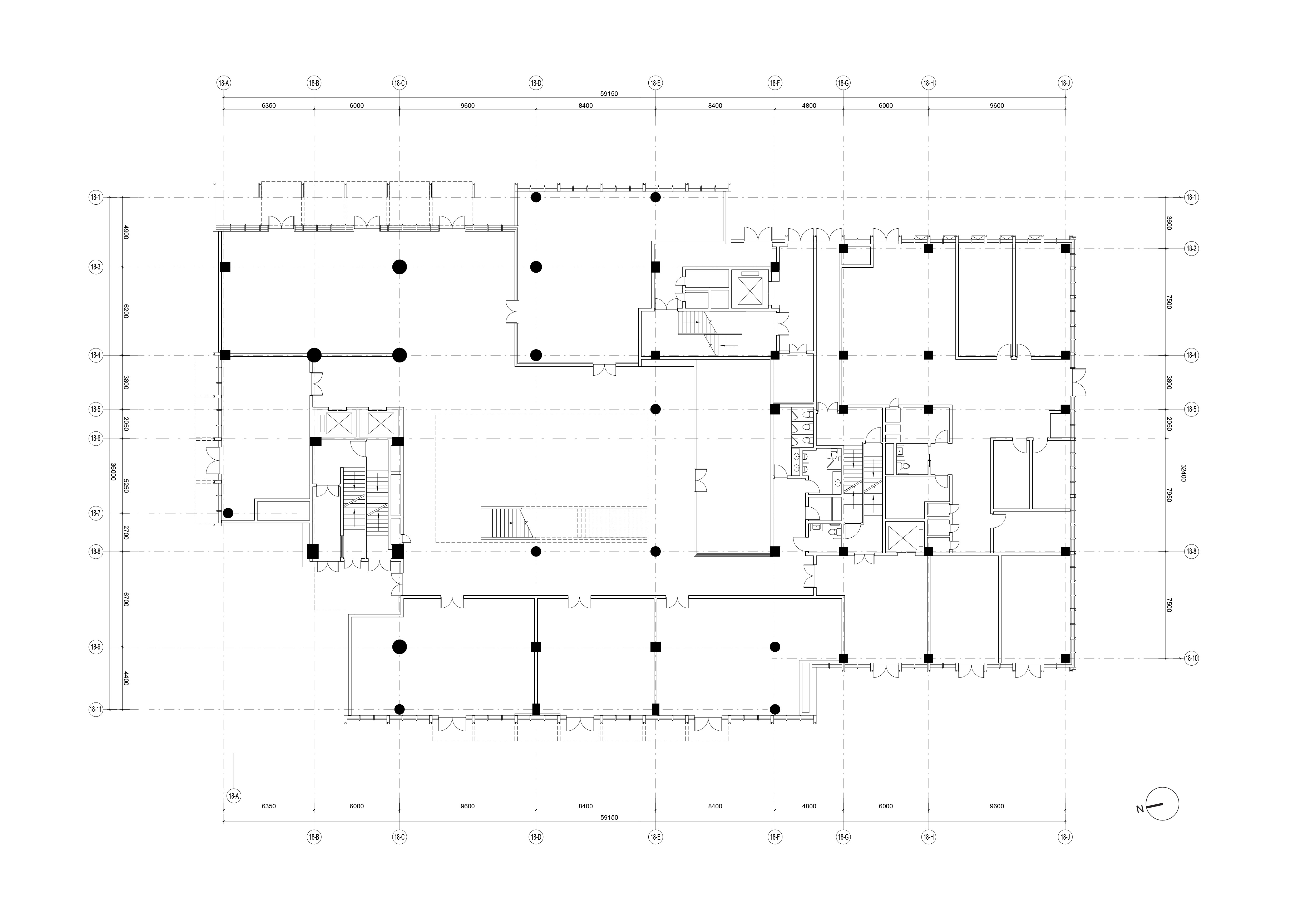 The two office buildings in the complex mirror the shifting volumetric language of the culture center. The two office buildings shift in plan, creating a dynamic volumetric interplay, and recognizability to not two but four main companies. At the shift location in between the tower blocks - executed in ultra clear glass - the office entrances and lobbies are located. On the higher floor the lift lobbies are located at the shift, providing an abundance of daylight to the usually dark lift lobbies.