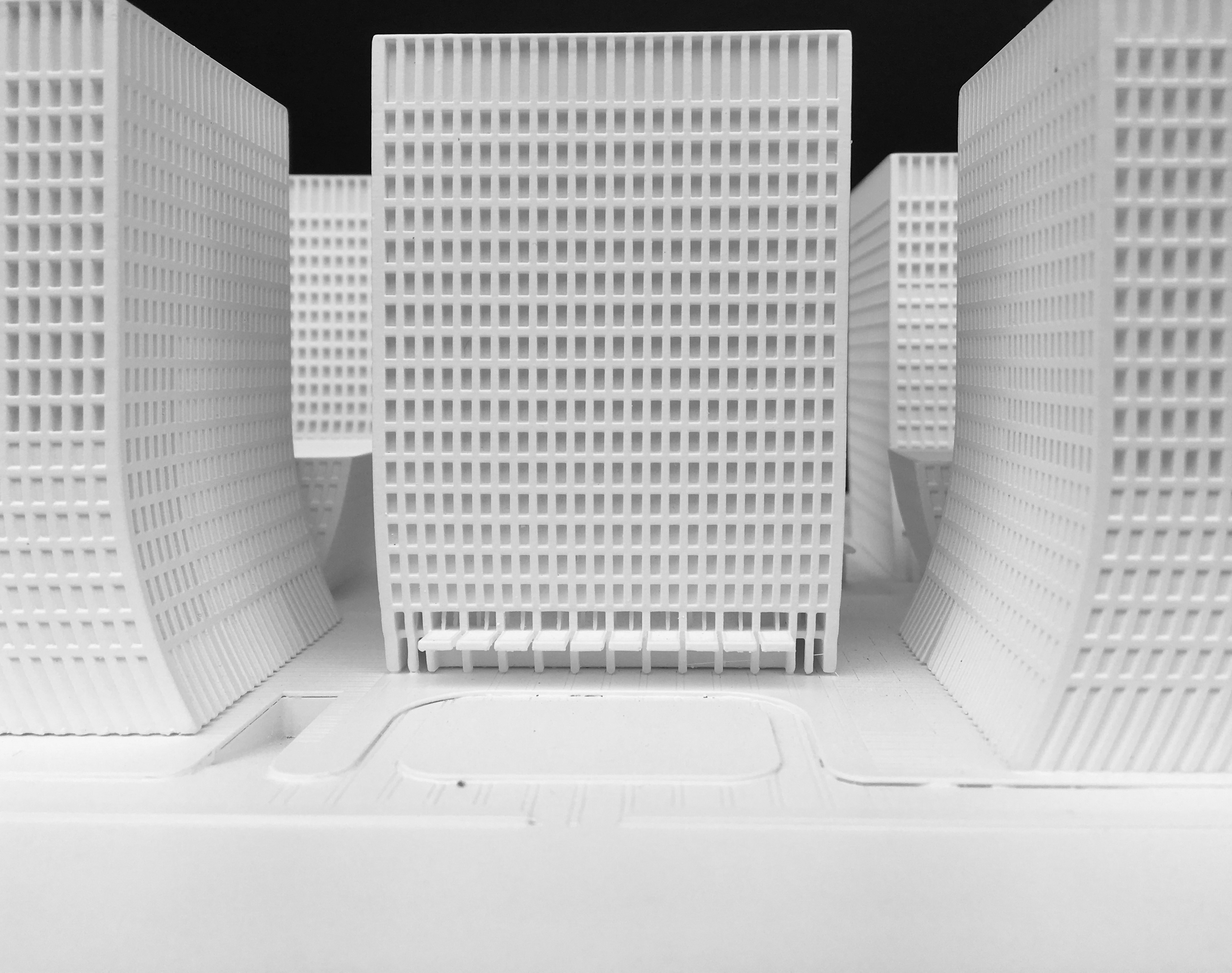 All towers, roads, fire climbing zones, parking entrances and drop-offs are strategically placed at the periphery of the site allowing for a central green heart of 10,000 square meters. A green patch in front of the site and belonging to the government is integrated in the design and merged together with the central park of the development. The landscape of the central heart gently slopes upwards towards the north allowing for retail units underneath.
